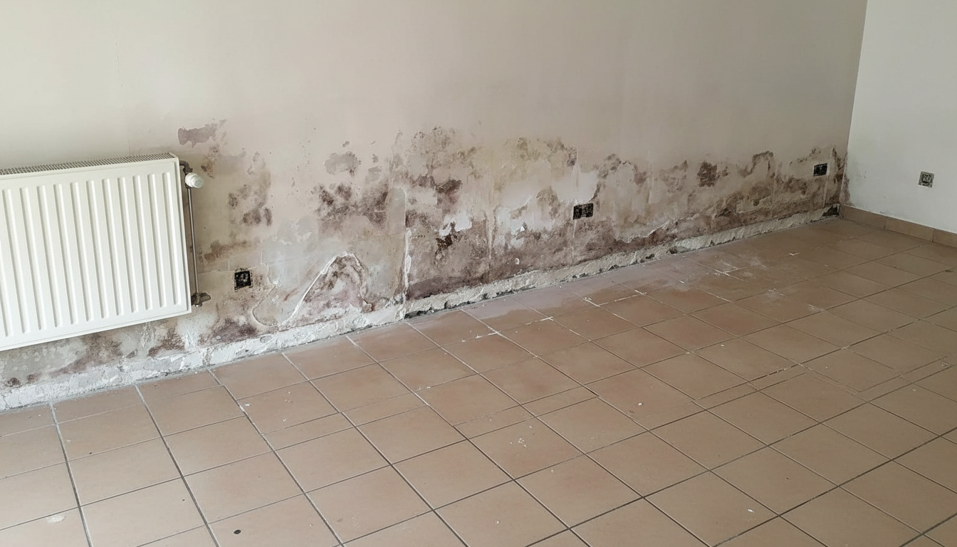 - Traces d’humidité en bas des murs (jusqu’à 1m – 1,5m)